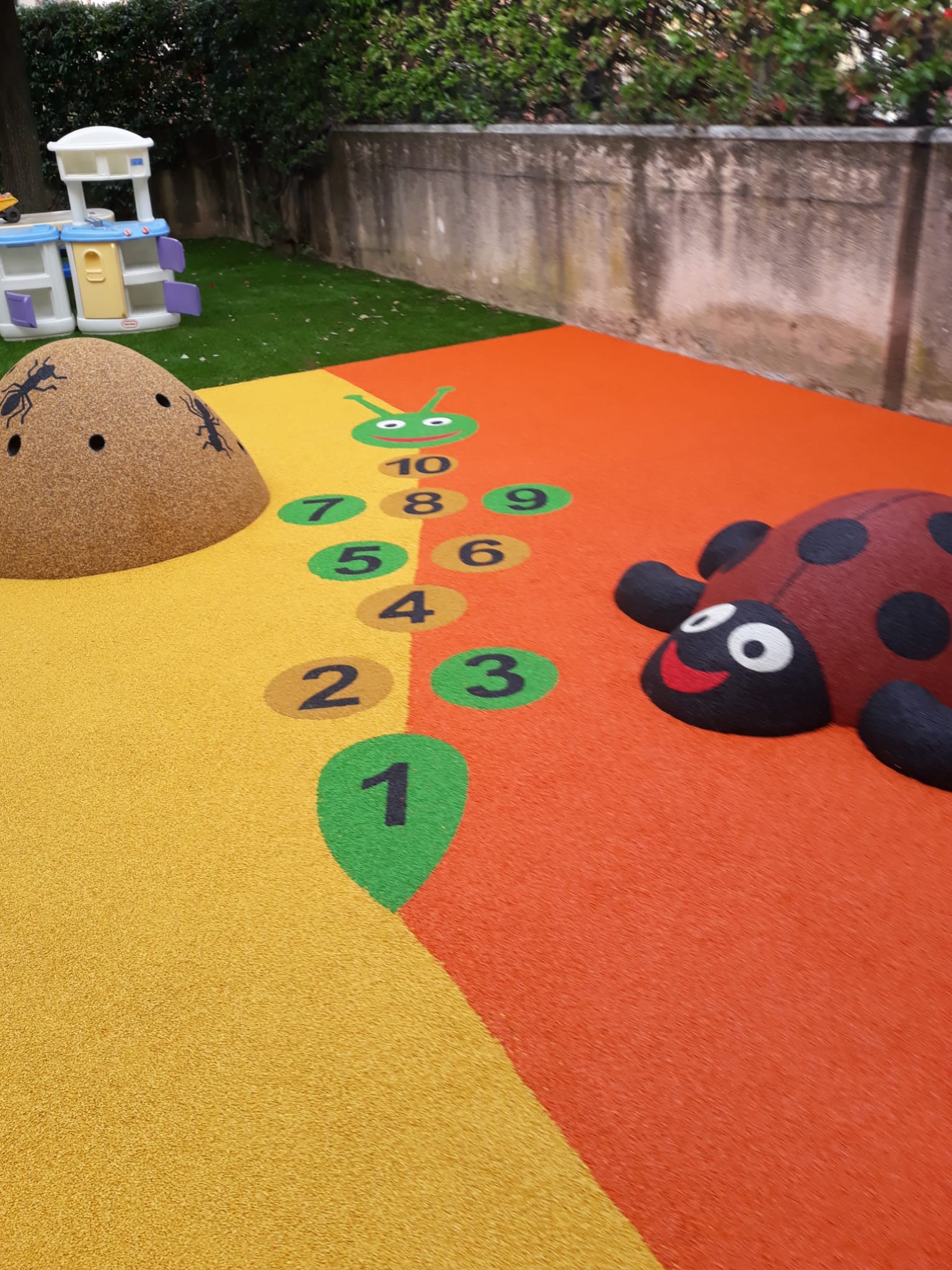 Le pavimentazioni in gomma colata, possono essere personalizzate su disegno fatto dal committente; la gomma colata è una soluzione utile anche per il rivestimento di eventuali parti in cemento, in modo da attutire eventuali urti, garantendo la sicurezza imprescindibile di ogni fruitore, oltre ad avere una valenza estetica.